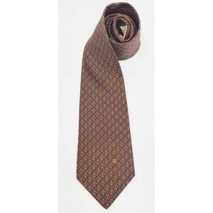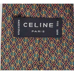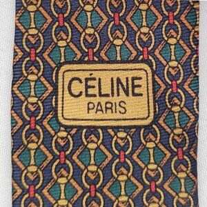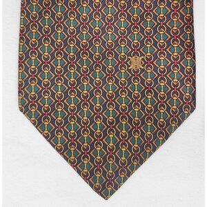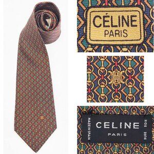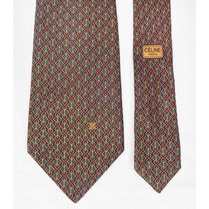 Celine Paris Mens Neck tie Geo Print Chain Link Logo Design Silk Green Red Navy