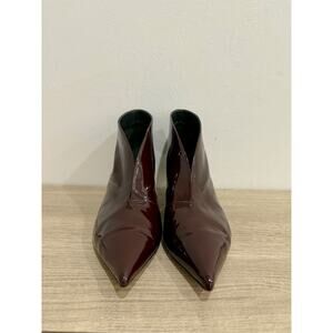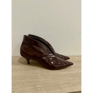 Celine Paris V Neck Polished Leather Kitten Heel Pumps Red Women's Size EU 39