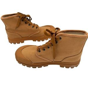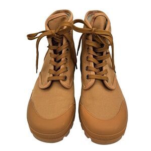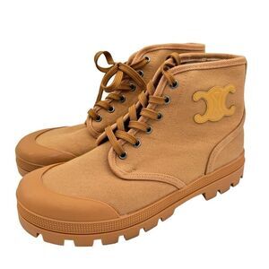 Celine Patapan Triomphe Tan Canvas Lace Up Short Boots Size 40