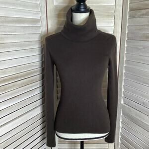 Celine Phoebe Philo Era Brown Cashmere Ribbed Turtleneck Sweater L