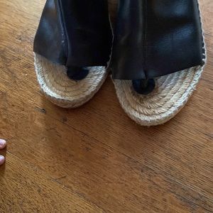 Celine Phoebe black leather espadrilles wedge sandals 39