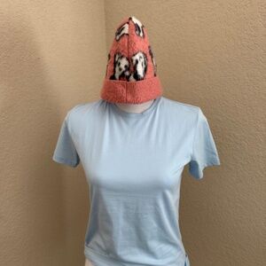 Celine Paris Pink w/black and white Puppy Wool Winter Beanie Hat with cuff