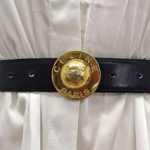 Celine Planet Belt In Navy Blue Leather and Gold Hardware Size 70 / 25