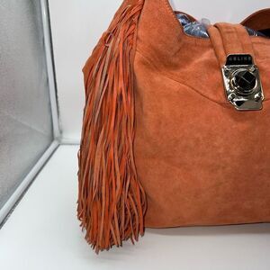 Celine RARE Dimitri Large Suede Satchel in Burnt Ochre