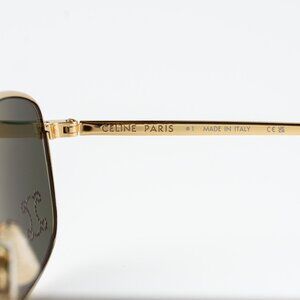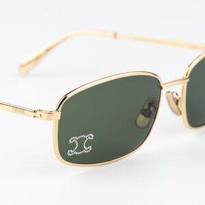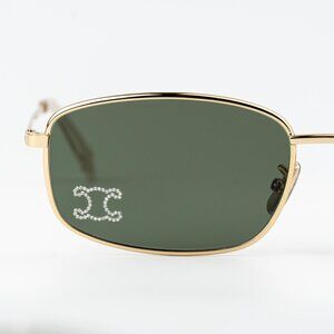 Celine RHINESTONE TRIOMPHE Men Sunglasses Gold Green Rectangle CL40285U 30N