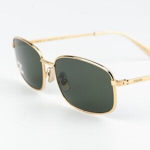 Celine RHINESTONE TRIOMPHE Men Sunglasses Gold Green Rectangle CL40285U 30N