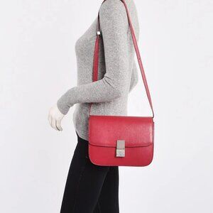 Celine Red Pebbled Calfskin Leather Medium Classic Box Flap Bag