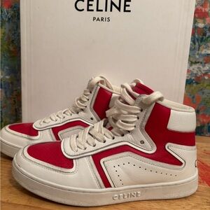 Celine high top sneakers size 6. Clean inside but the soles are not. No rips. With box and dust bags.