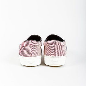 A fun pair of platform slip-on sneakers from Celine by Phoebe Philo featuring a a multicolour knit, a rounded toe, black leather lining, and white rubber outsole.
