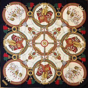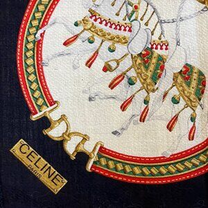 Celine Scarf - Horse and Saddle Motifs on Navy Blue Background