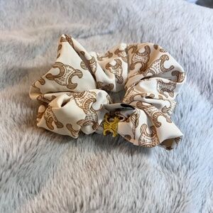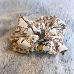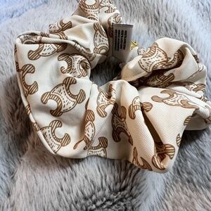 Celine Scrunchie Triomphe Camo in Silk and Brass and Gold Finish