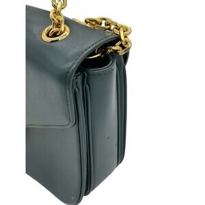 This is an authentic CELINE Shiny Calfskin Medium C Bag in Hunter Green. This shoulder bag is crafted of leather in Hunter Green. The modern bag features gold toned chain link shoulder straps, a leather shoulder pad, and a front matte gold press lock that opens to a partitioned leather interior with zipper and patch pockets.