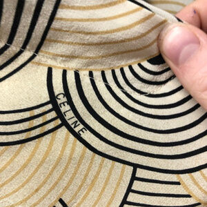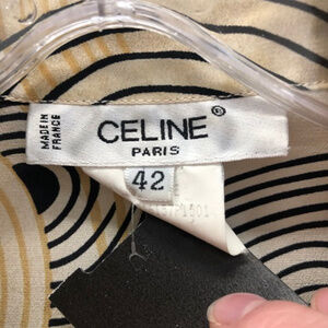 Celine cream black and marigold overlapping circle-pattern button-down blouse retail $1550, Size 10/12 (EU42)