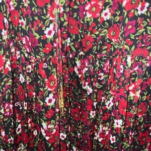 Red and black floral print, Floral Ruffle & Chain-Link Accents, Sleeveless with Square Neckline