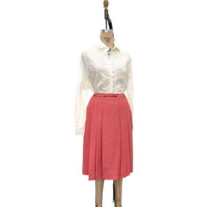 In a white and tangerine red tight plaid weave. Couture styling throughout with the signature orange silk lining as well as Celine engraved brass bits on the waist accent attached belt. Side zipper with hook&eyeFlat front with soft pleats at the bottom issues, beautiful and ready to wear small up to 26 to 27in waist