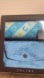 Elegant Celine set in sky blue. Features monogram pattern. Includes matching accessory.