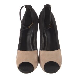 Celine Suede Black Tan Color Block Mary Jane Peep Toe Wedge Pumps Size 39.5