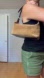 Main callout is rubbing and darkening on all corners (bottom and top), which is common with this style of bag. The bag is still very beautiful and has so much life left. The color is medium/caramel brown - closest to what you see in the photos.