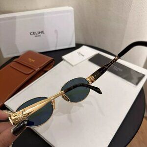 Celine Sunglasses CL40235U Triomphe Gold Metal Frame Green Lenses Sunglasses