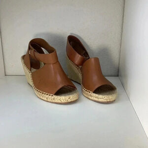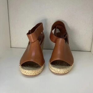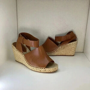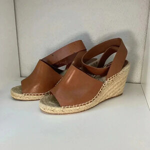 Celine Tan Jute Leather Wrap around Wedge Platform Espadrilles size 38