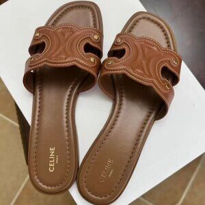 🤎Celine Tan Leather Slide Sandals – EU39