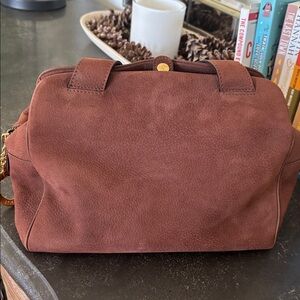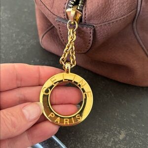 Celine leather bag in tan with a striking gold charm. Sophisticated and chic.