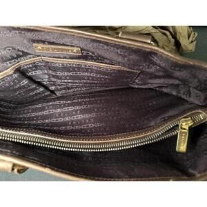 Celine Tan Suede and Leather Boogie Bag. The leather has a metallic brown/copper color.