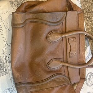 AUTHENTIC Celine Drummed Calfskin Mini Luggage. This bag is so beautiful. It’s a gorgeous light cognac color. The leather is super soft and with light interior Celine shoulder bag. Features tan leather exterior. Cream fabric interior. Perfect for everyday use. please look at all photos before purchasing ask any questions bag is used does show where needs to be professionally cleaned price reflects the where of the bag