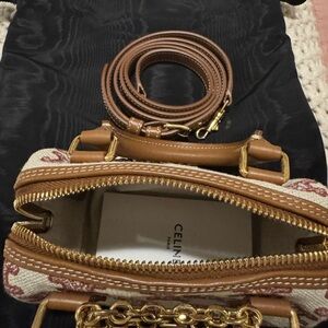 Celine Tan and Red Mini Bag with Structured Design
