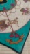 Elegant scarf with equestrian design. Features teal and white colors. Adds sophistication to any space.