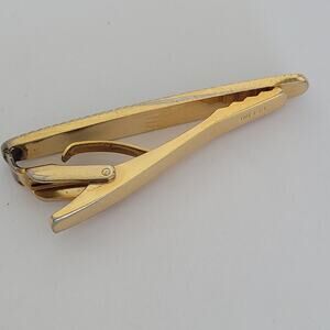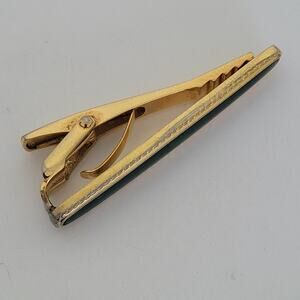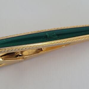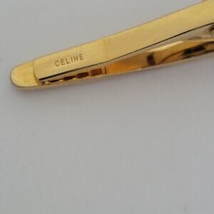 Celine Tie Bar Clip Clasp Gold Green Tone 2in Logo Vintage Glam Carriage Logo