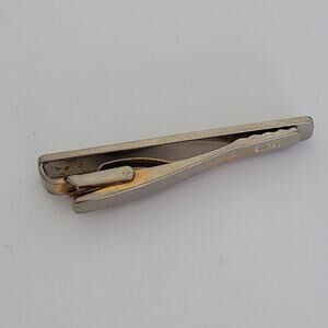 Celine Tie Bar Clip Clasp Silver Tone 2in Logo Vintage Fair Logo