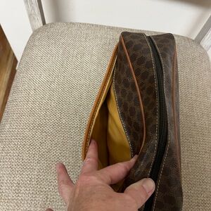 Celine Toiletry Bag with Monogram Pattern, EUC!, brown, 9x6x3”, Unisex