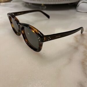 Stylish Celine sunglasses. Tortoise shell frame. Dark lenses. Elegant design.