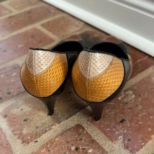 Celine Triangle Heel wide-striped water snakeskin high heels NWT