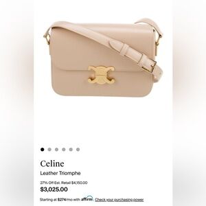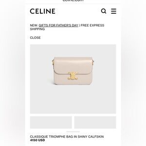 This is an authentic CELINE Shiny Calfskin Medium Triomphe in Nude.