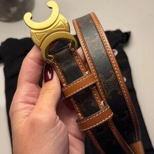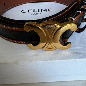 New Celine belt in Triomphe canvas with gold buckle. Size 90cm length, 25mm width. Includes original box