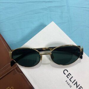 Celine Triomphe Gold Frame Green Lenses Oval Sunglasses