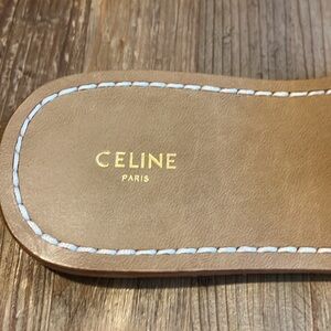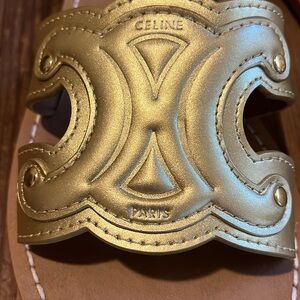 Celine Triomphe Gold Slide Sandals. Leather Sandals. Serial code FA0261