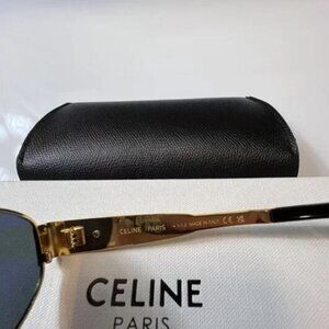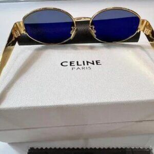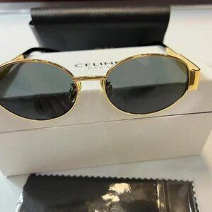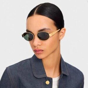 Celine Triomphe Metal CL40235U 30N Oval Sunglasses in Gold with Green Lenses