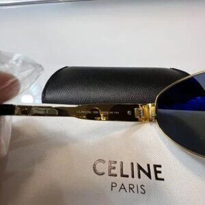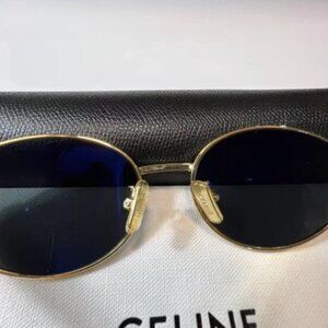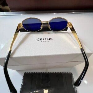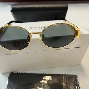 Celine Triomphe Metal CL40235U 30N Oval Sunglasses in Gold with Green Lenses