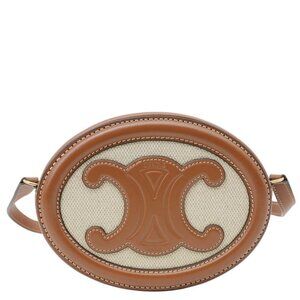 Celine Triomphe Oval Calfskin Leather Crossbody Bag Tan