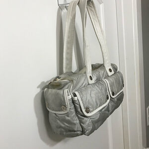 Celine Triomphe Silver Nylon with Leather Handles and Trim Vintage EUC