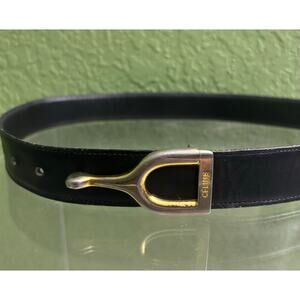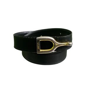 Celine VTG Horseshoe Equestrian Black Leather Gold Silver Buckle Belt Size 30