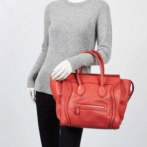 Celine Vermillion Smooth Calfskin Leather Mini Luggage Tote Bag