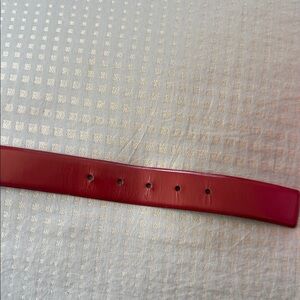 Celine belt in rich crimson leather. Features a sleek metallic buckle. The belt is vintage please looks at peeling in the back before purchase