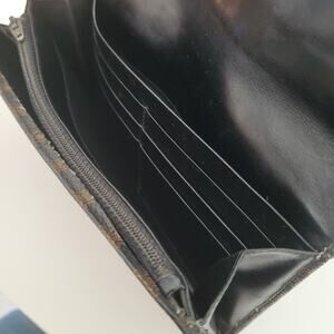 Celine Vintage Envelope Leather Large Wallet Macadam Black Brown Long