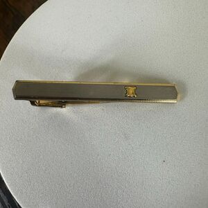 Celine Vintage Gold Tie Bar Logo Tie Pin Clip Authentic