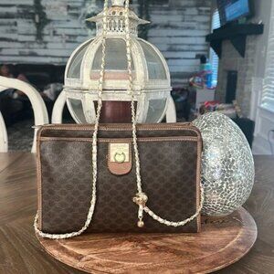 Celine Vintage Macadam clutch crossbody and Leather bifold wallet GUC