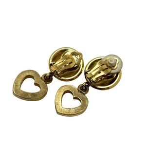 Rare vintage Céline Paris clip-on earrings from the late 1980s–early 1990s, crafted in France during the golden age of bold costume jewelry. These earrings feature a polished domed stud with a dangling open heart charm engraved CELINE PARIS — a playful yet iconic motif that feels just as modern today with the return of Y2K and statement jewelry.